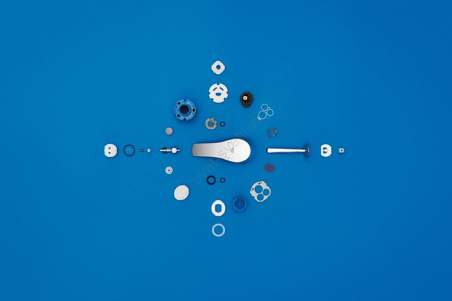 • Kompaktna termostatska kartuša GROHE TurboStat z voskovnim termičnim elementom za hitro in natančno regulacijo temperature vode.