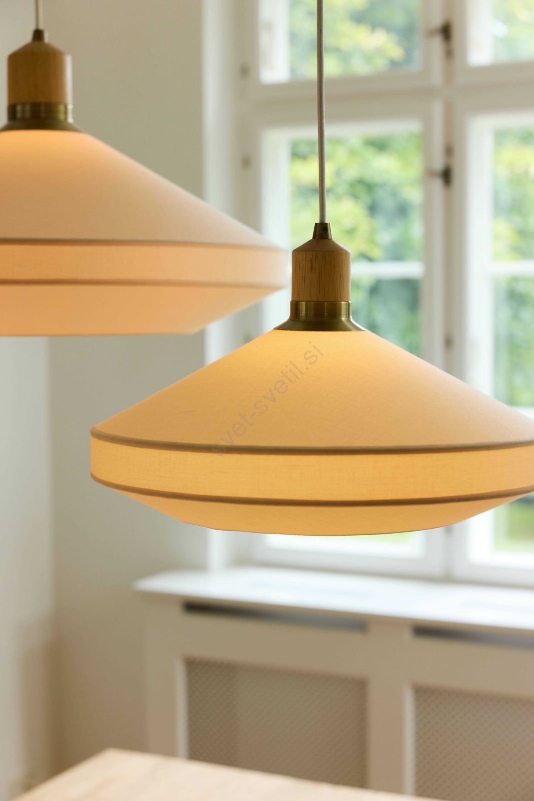 Halo Design 744305 - Viseča svetilka PARIS na kablu, 1xE27/40W/230V, premer 56 cm, kremna/medenina/hrast