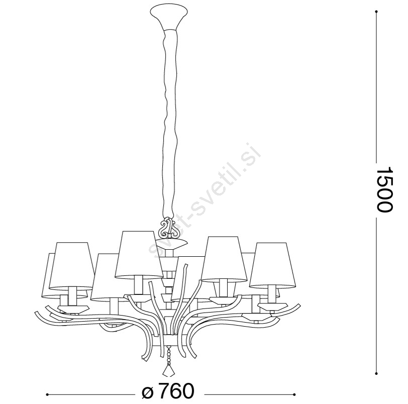 Ideal Lux - Kristalni lestenec na verigi PEGASO 8xE14/28W/230V pr. 76 cm sijajni krom je značilen lep in funkcionalen dizajn. Za svetilko je primerna žarnica z vznožkom E14. Tukaj lahko kupite ostale žarnice po ugodnih cenah.