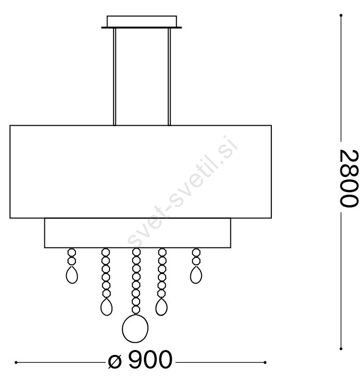 • Kovinsko podlago dopolnjujeta dva odtenka iz PVC folije, ki se vstavita drug v drugega. Odtenki so okrašeni s finimi kovinskimi nitmi v beli barvi in z rezanimi kristalnimi obeski.