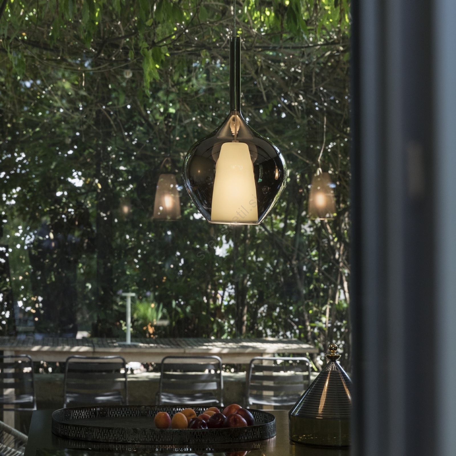 • Ideal Lux - Viseči lestenec s kablom KALIQUE 1xE27/42W/230V Ø 18 cm dimljeno modra
