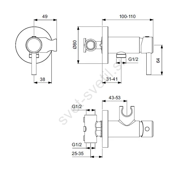 • Zunanji priključek za mešano vodo je izveden v velikosti G 1/2.