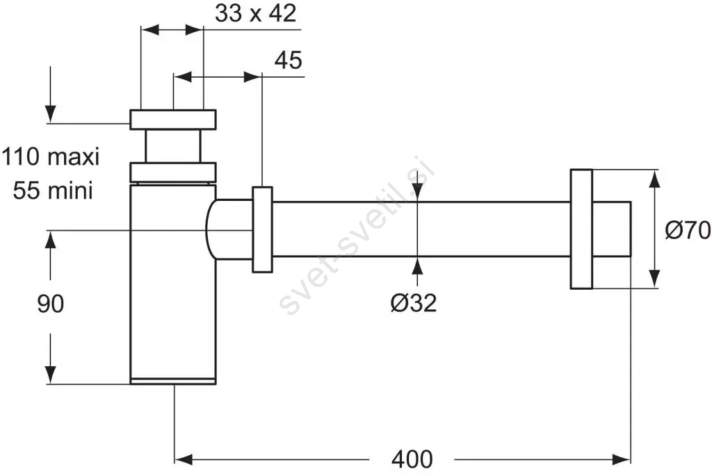 • Sifon je kromiran (maten krom).