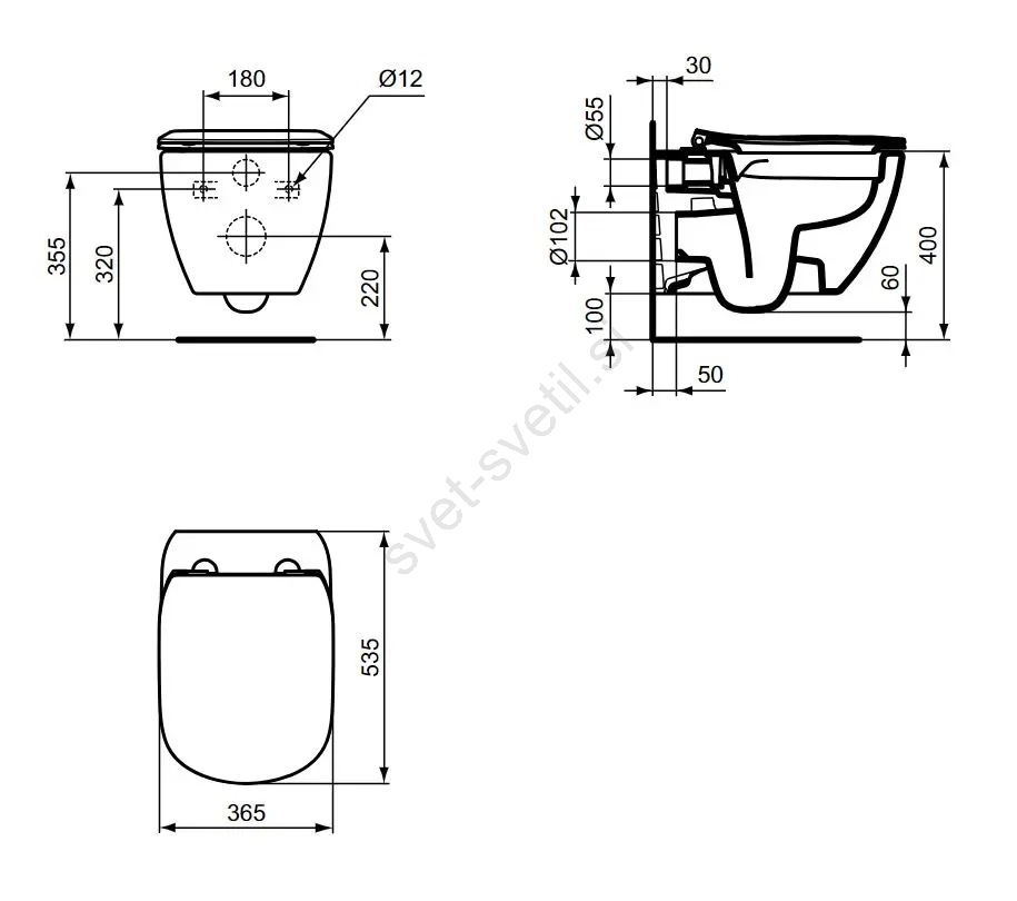 • Komplet viseče WC školjke in ultra tanke WC deske je izdelan iz kakovostne sanitarne keramike v beli barvi.