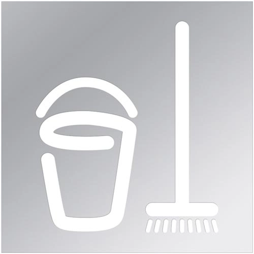 • Ikona iz nerjavečega jekla za označitev prostora za čiščenje.
