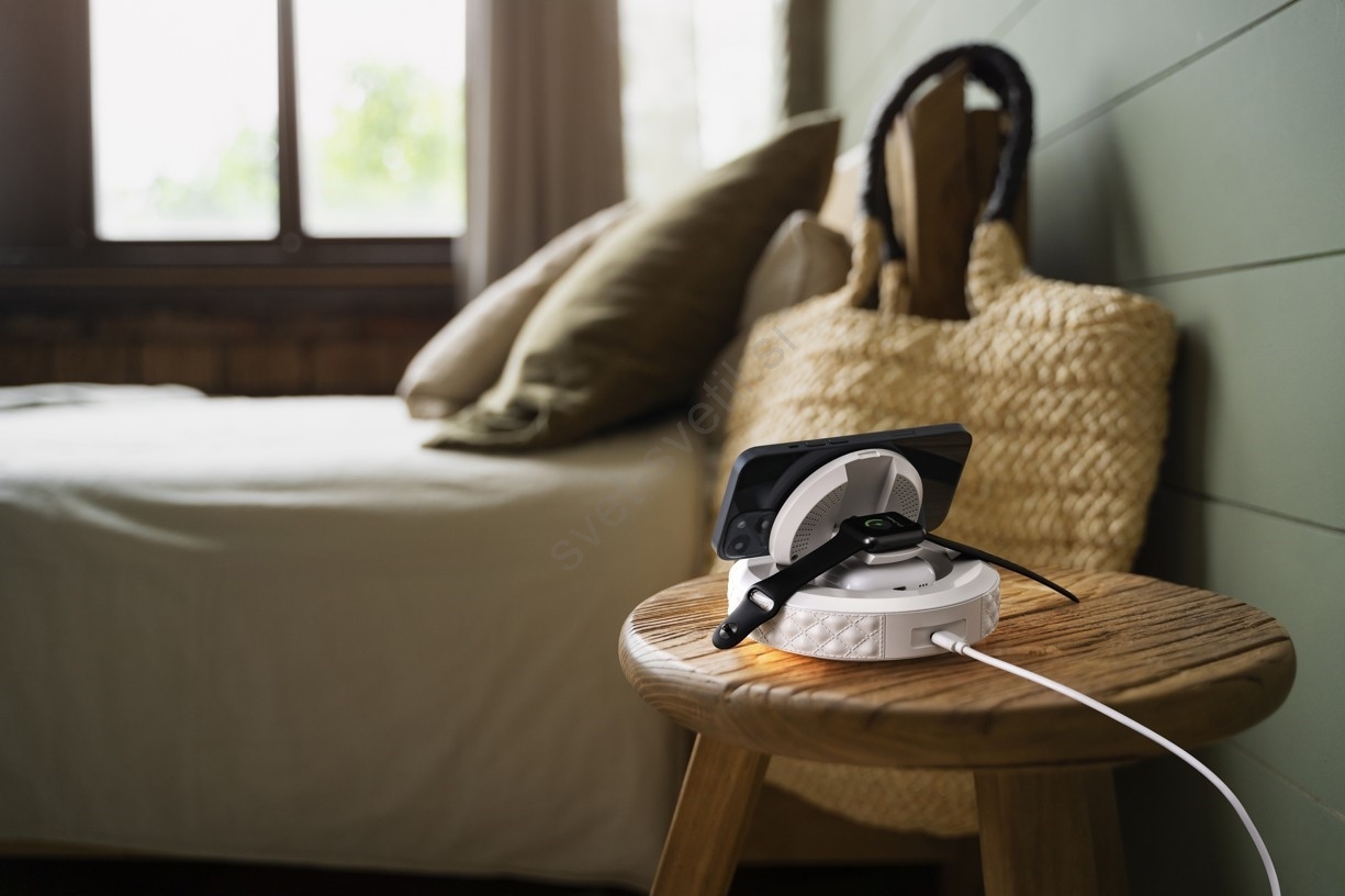 • Večfunkcijsko brezžično polnjenje 3v1 za: pametne telefone (5W/10W), pametne ure, brezžične slušalke.