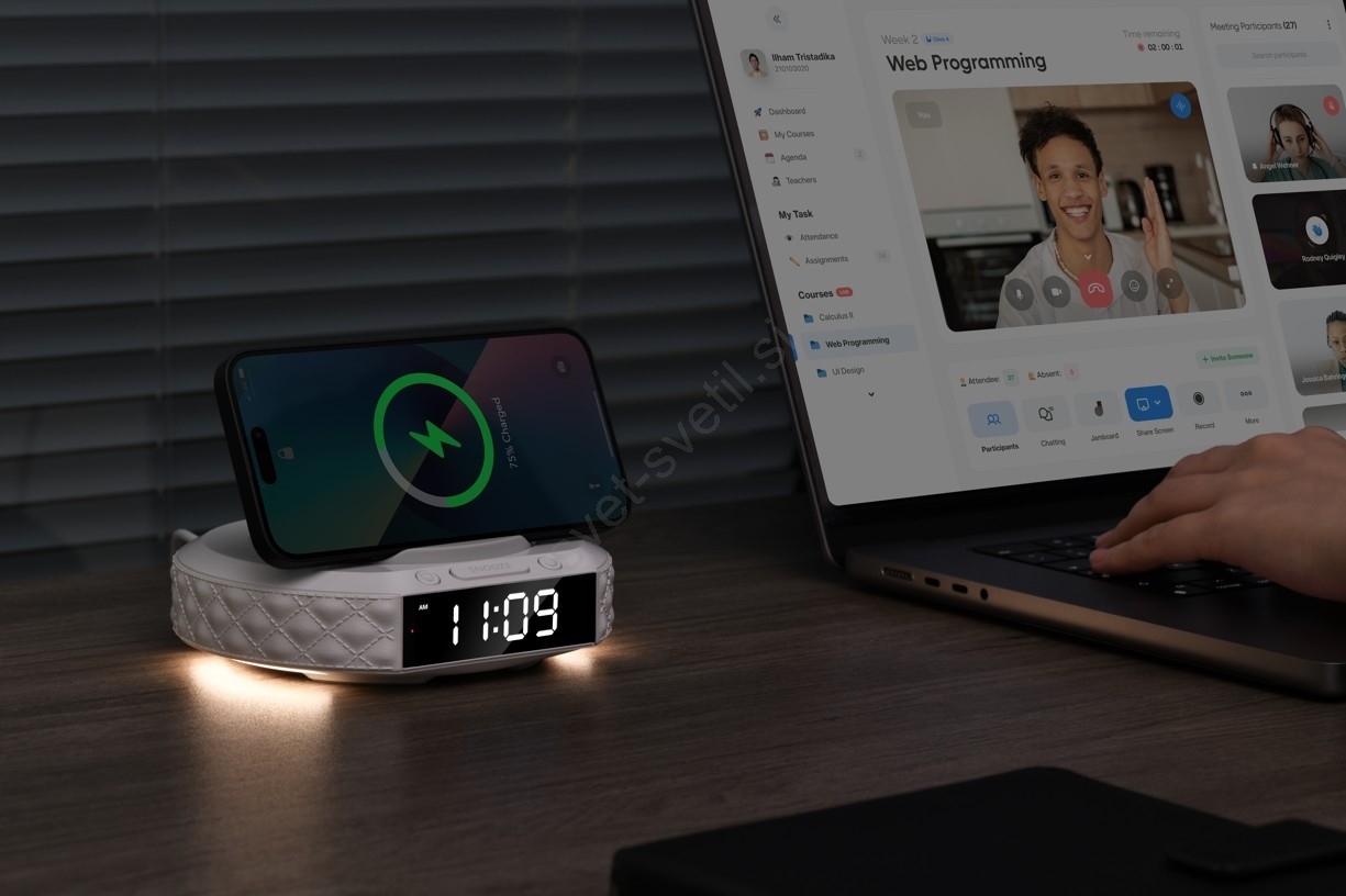 • Stilska namizna ura in stojalo za polnjenje za vašo pametno napravo.