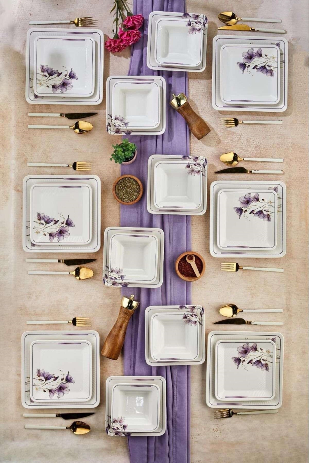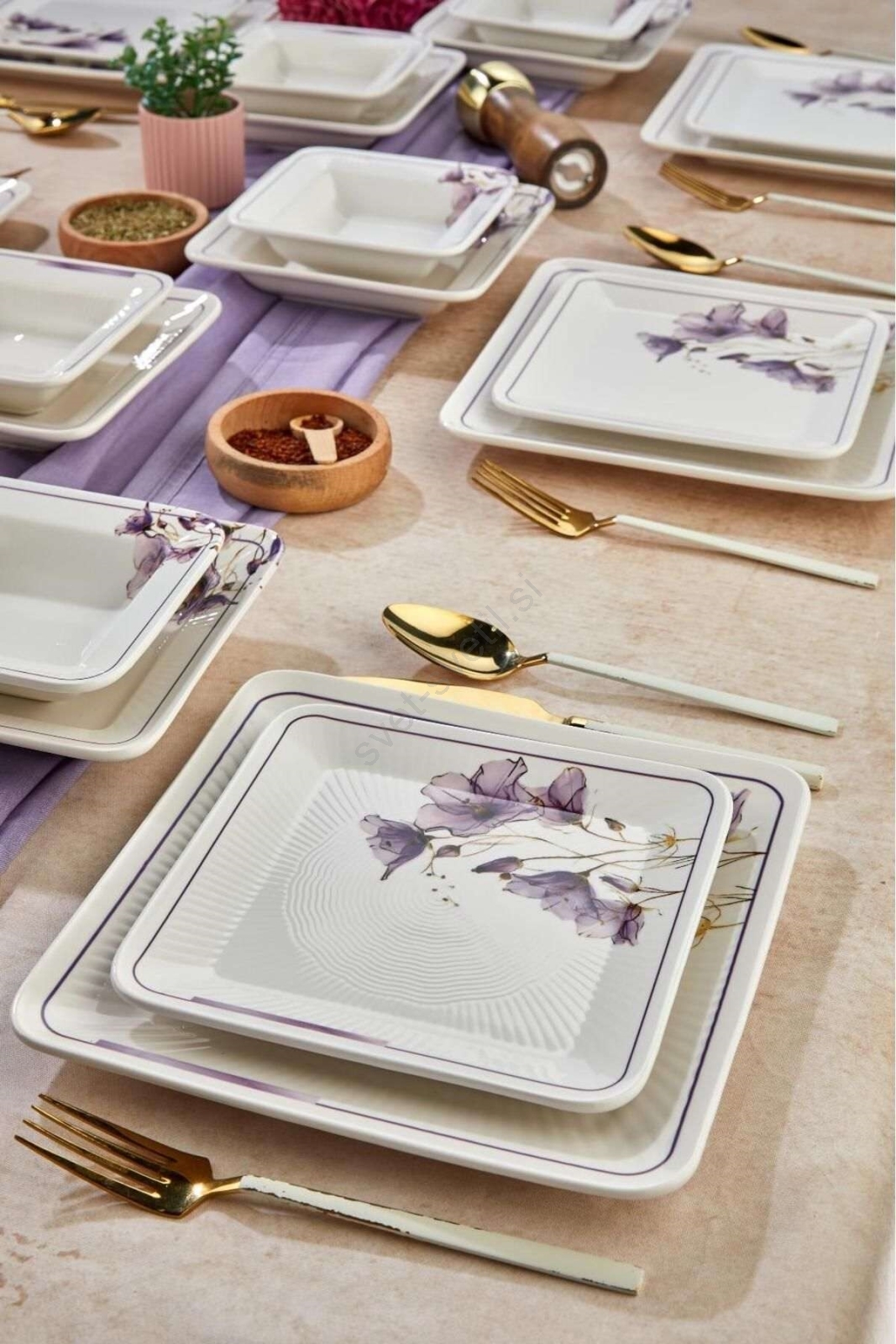 Jedilni komplet 24-delni bel/vijoličen/keramika