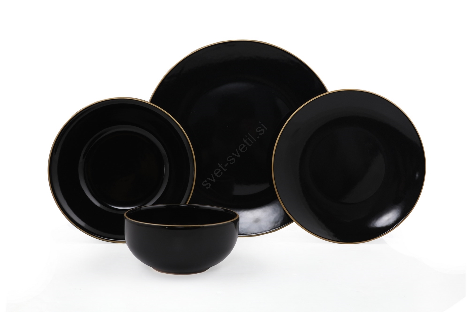 Jedilni komplet 24 kosov črna/zlata/kamenina