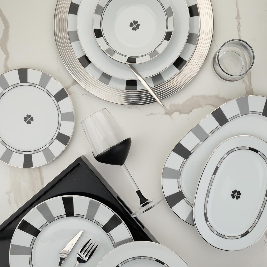 Jedilni komplet 27 kosov bela/siva/porcelan
