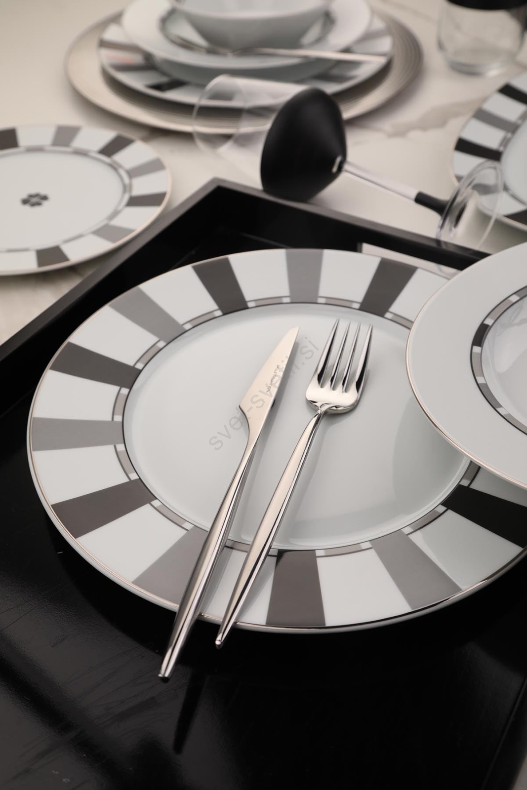 • Elegantna jedilna garnitura, primerna za vsakodnevno postrežbo in slavnostne priložnosti.