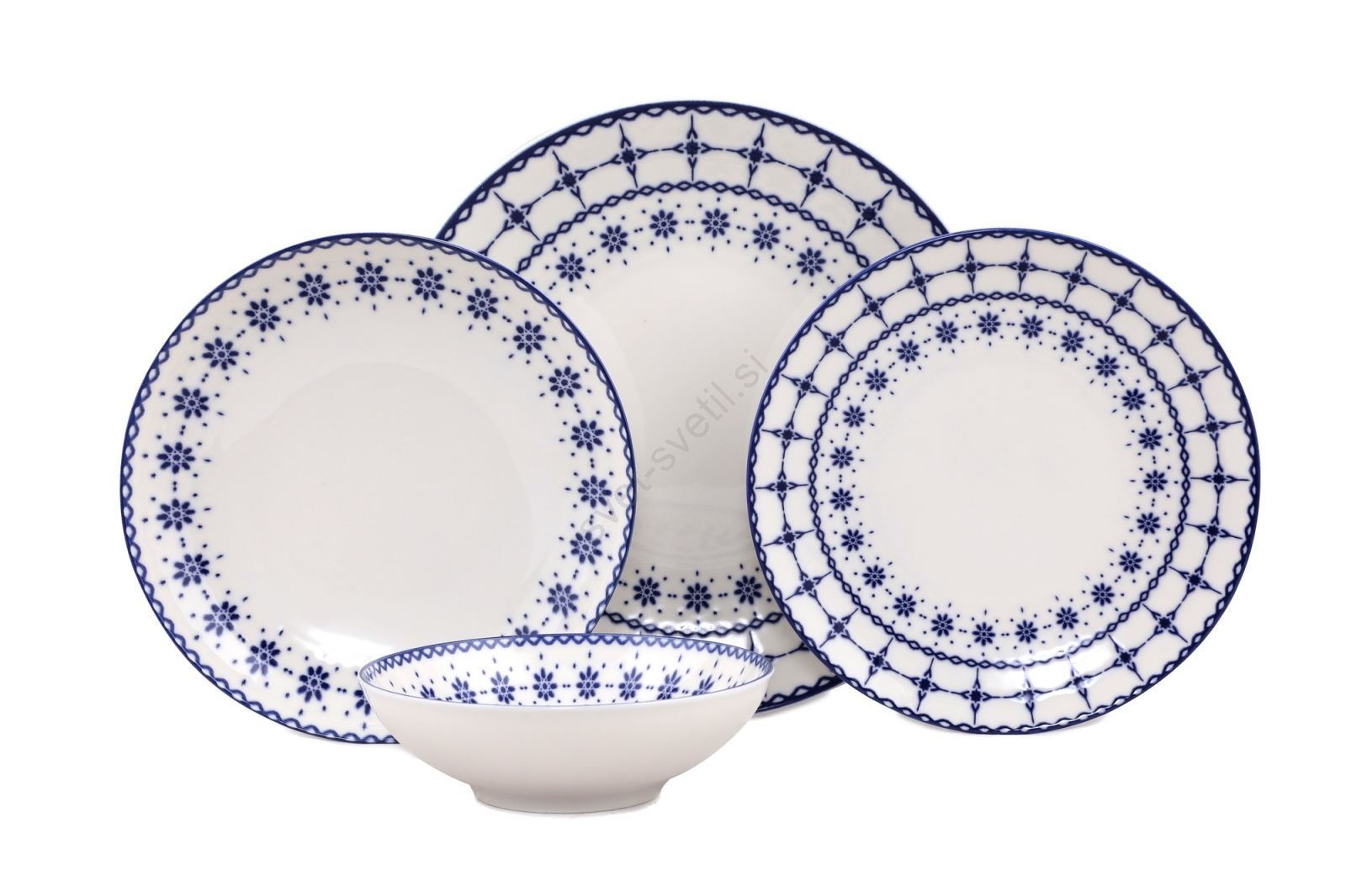 Jedilni servis, 24-delni, bel/moder, porcelan