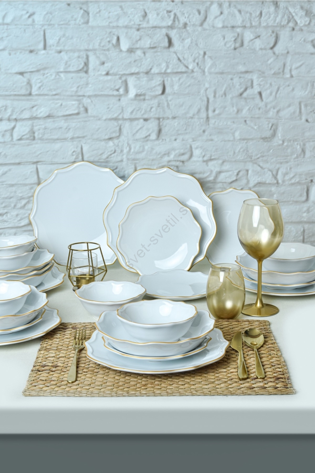 Jedilni set 24 kosov, bela/zlata/kamenina