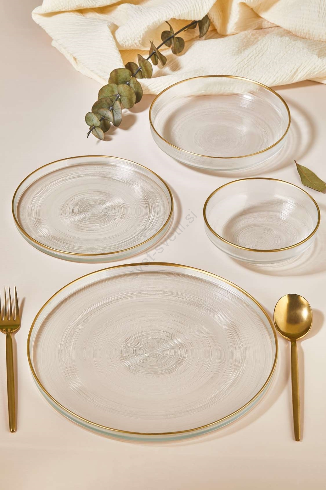 Jedilni set 24 kosov prozorno/zlato/steklo