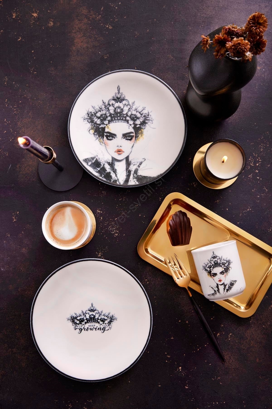 • Eleganten komplet jedilnega posodja, primeren za vsakodnevno postrežbo in slovesne priložnosti.
