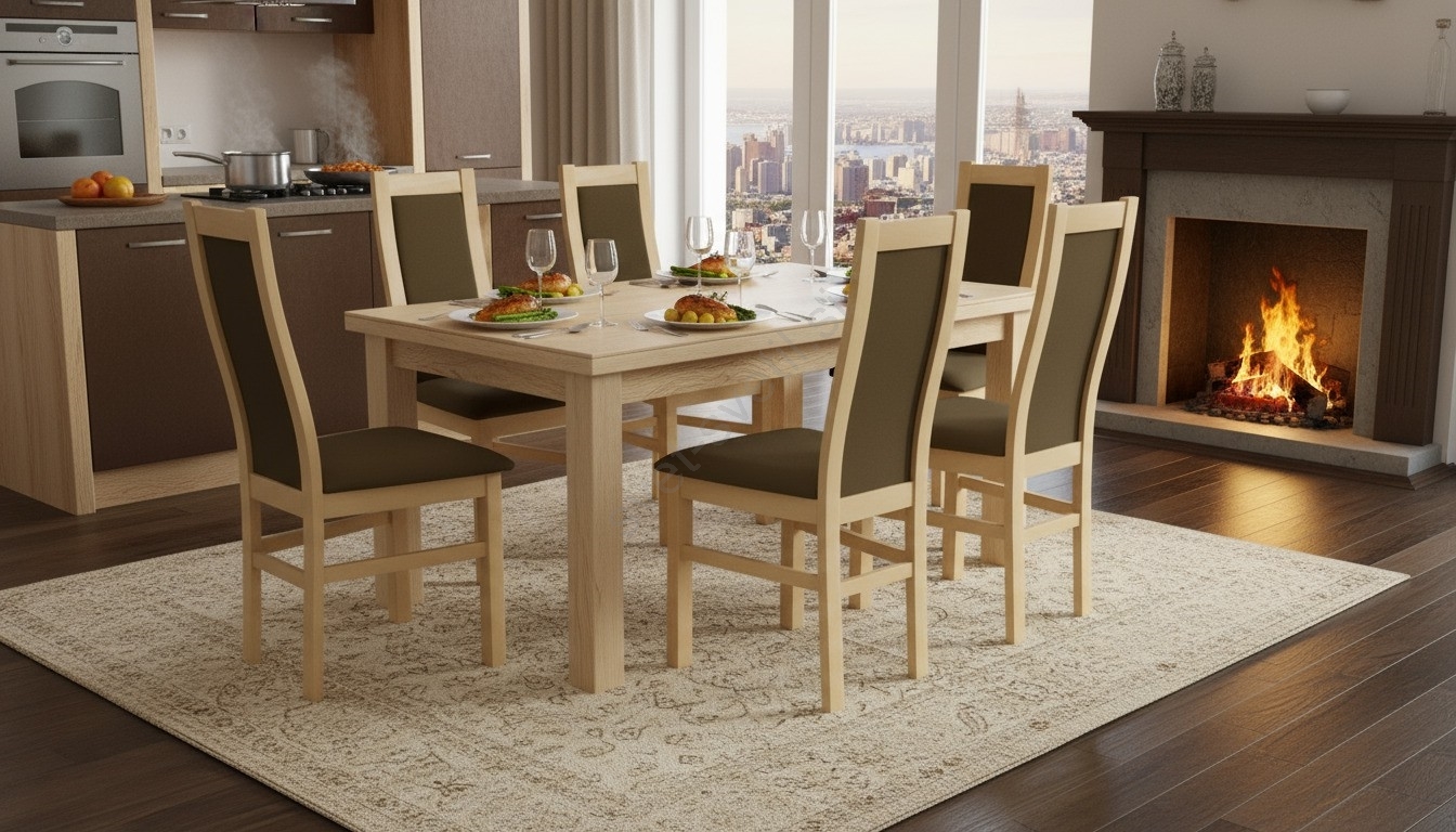 • Uživajte v udobnem obedovanju s tem jedilnim stolom, ki ima lesen okvir in oblazinjeno sedišče.