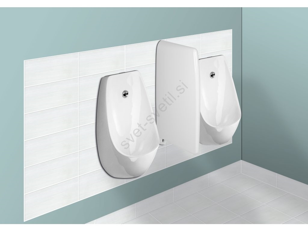 • Stenski pisoar brez roba, ki preprečuje nabiranje umazanije in bakterij.