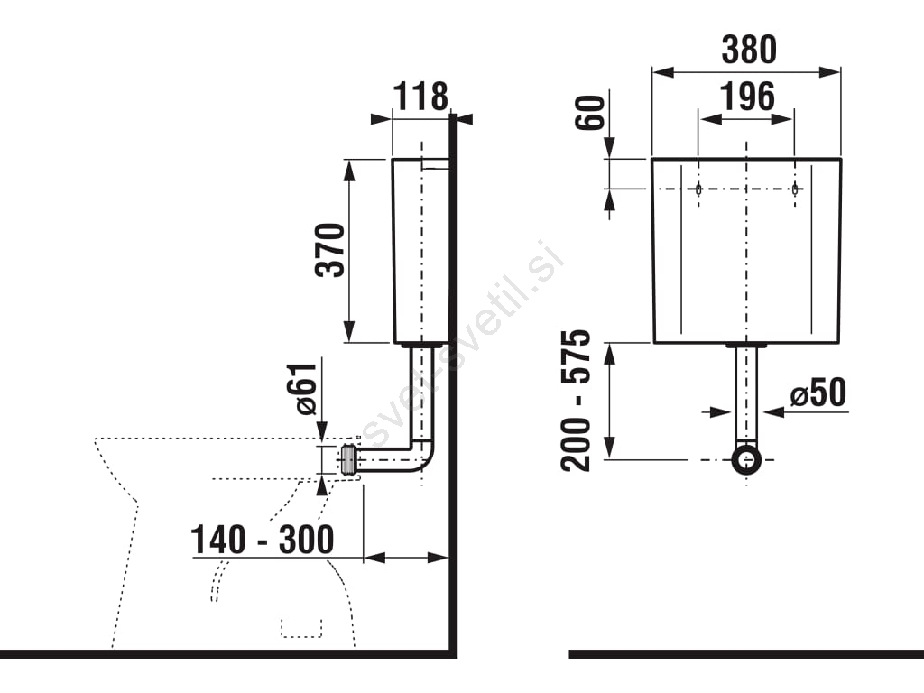 JIKA H8937100000001 - Vodokotliček MODUL stranski priključek plastika/bela
