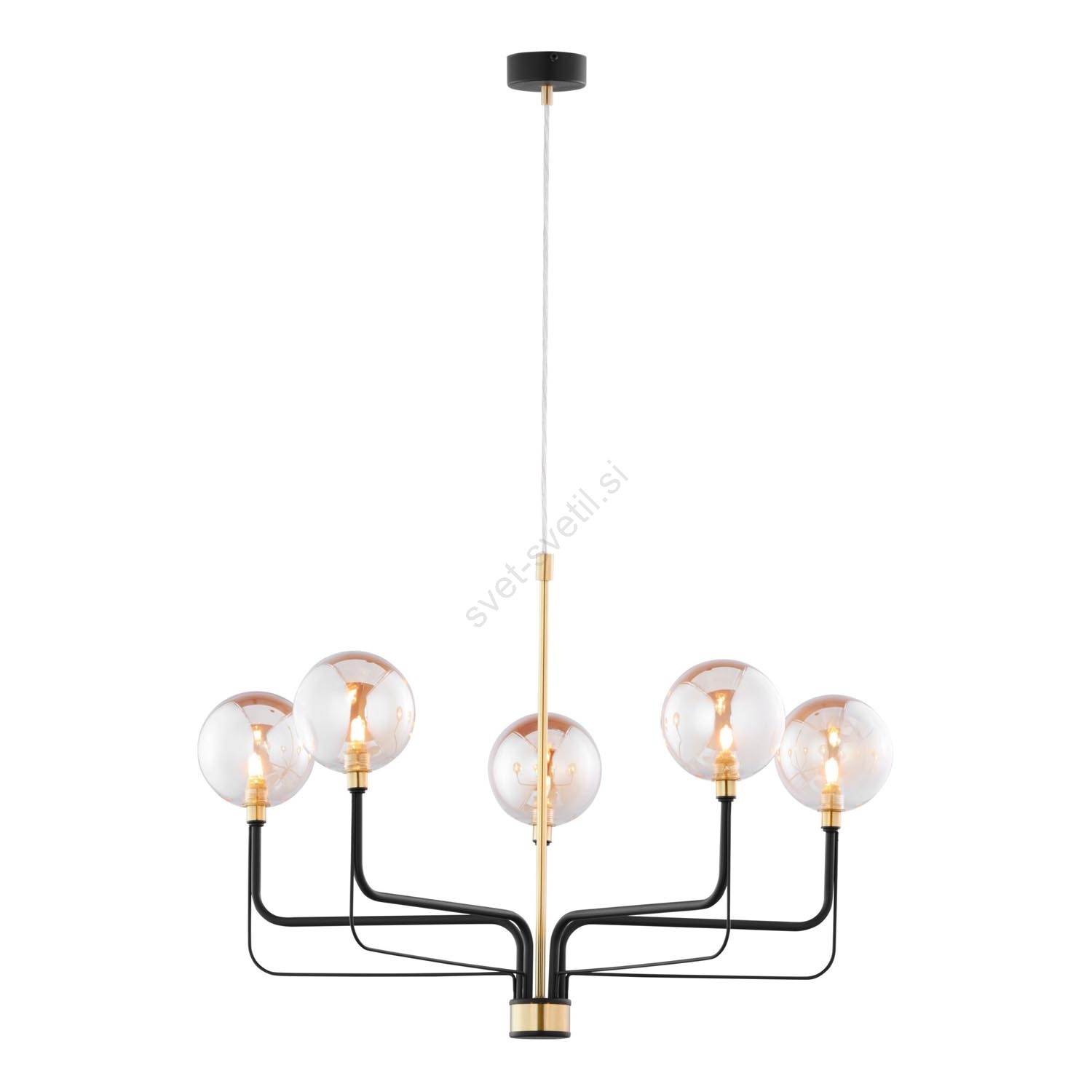 Jupiter 1886 - Lestenec na kablu ERIS 5xG9/14W/230V zlata/črna/dimno bež je značilen lep in funkcionalen dizajn. Za svetilko je primerna žarnica z vznožkom G9. Tukaj lahko kupite ostale žarnice po ugodnih cenah.