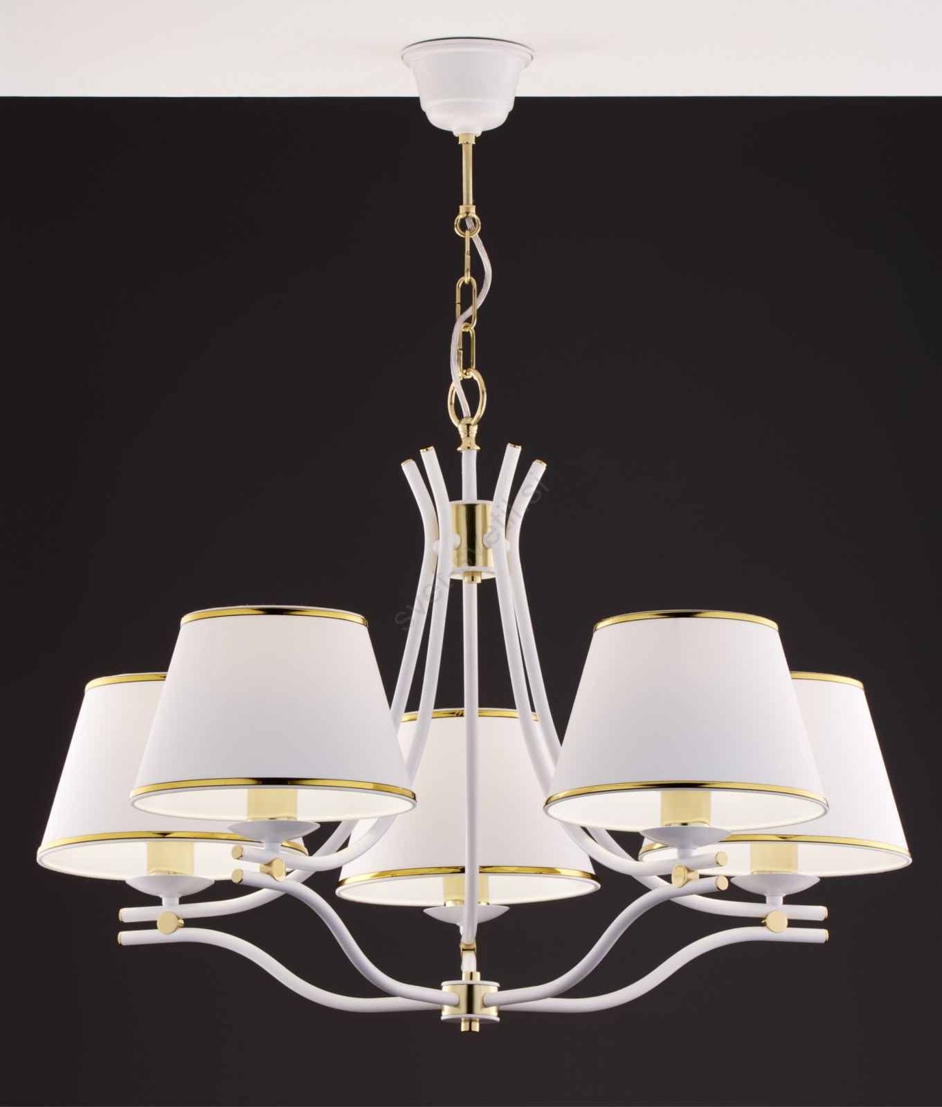Jupiter 2084 - Lestenec na verigi SAMBA 5xE27/15W/230V bela/zlata je značilen lep in funkcionalen dizajn. Za svetilko je primerna žarnica z vznožkom E27. Tukaj lahko kupite ostale žarnice po ugodnih cenah.