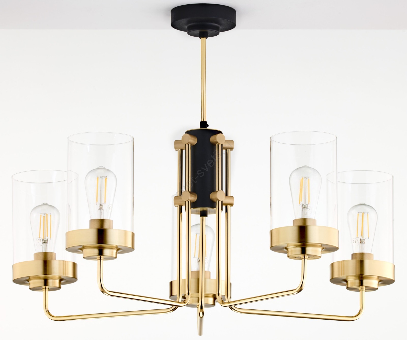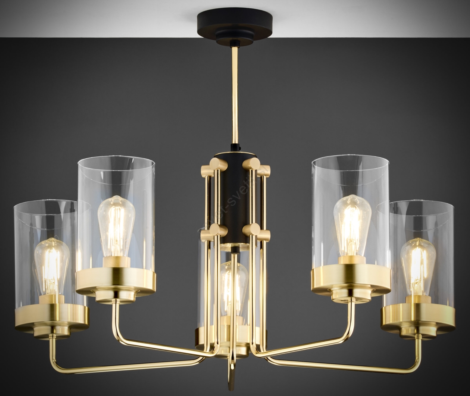 Jupiter 2088 - Lestenec na steblu RAMIREZ 5xE27/15W/230V zlata/črna je značilen lep in funkcionalen dizajn. Za svetilko je primerna žarnica z vznožkom E27. Tukaj lahko kupite ostale žarnice po ugodnih cenah.