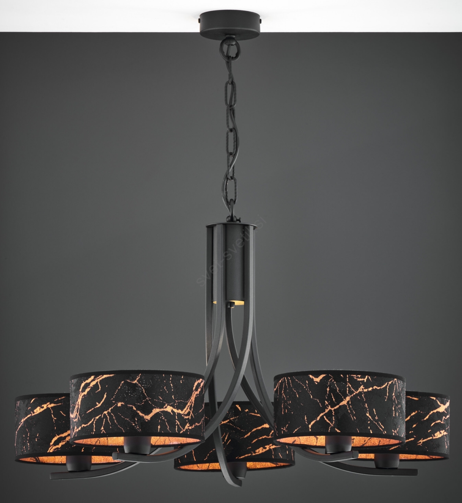 Jupiter 2107 - Lestenec na verigi ARTHUR 5xE27/15W/230V črna/oranžna/marmorni dekor