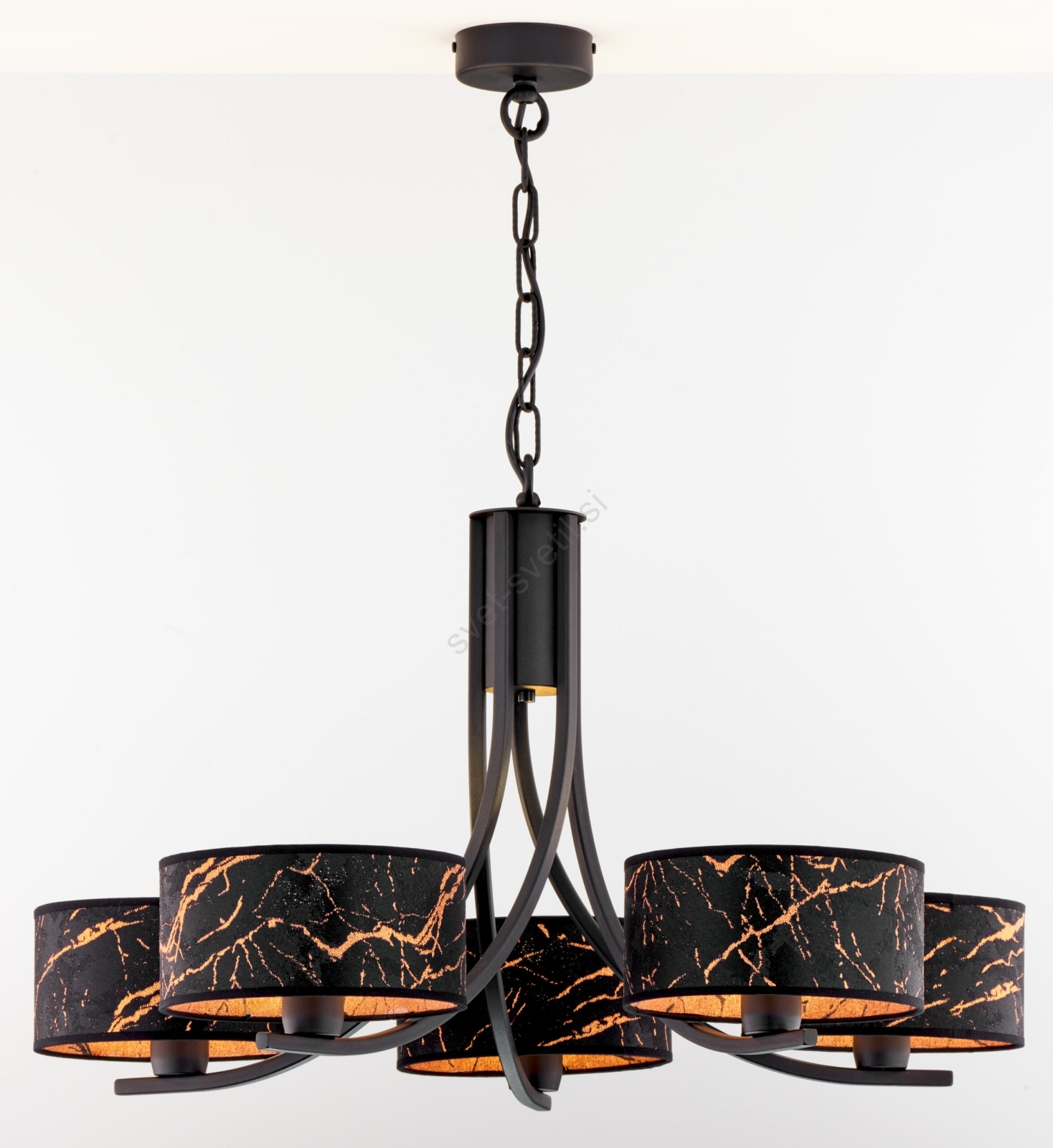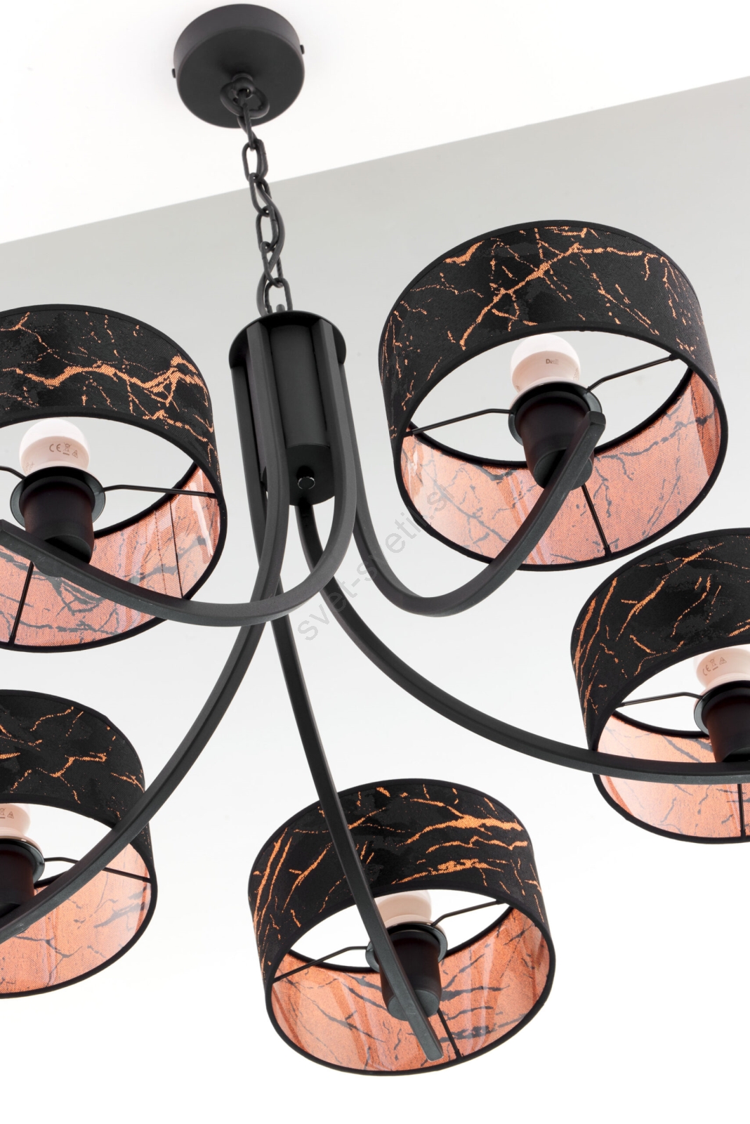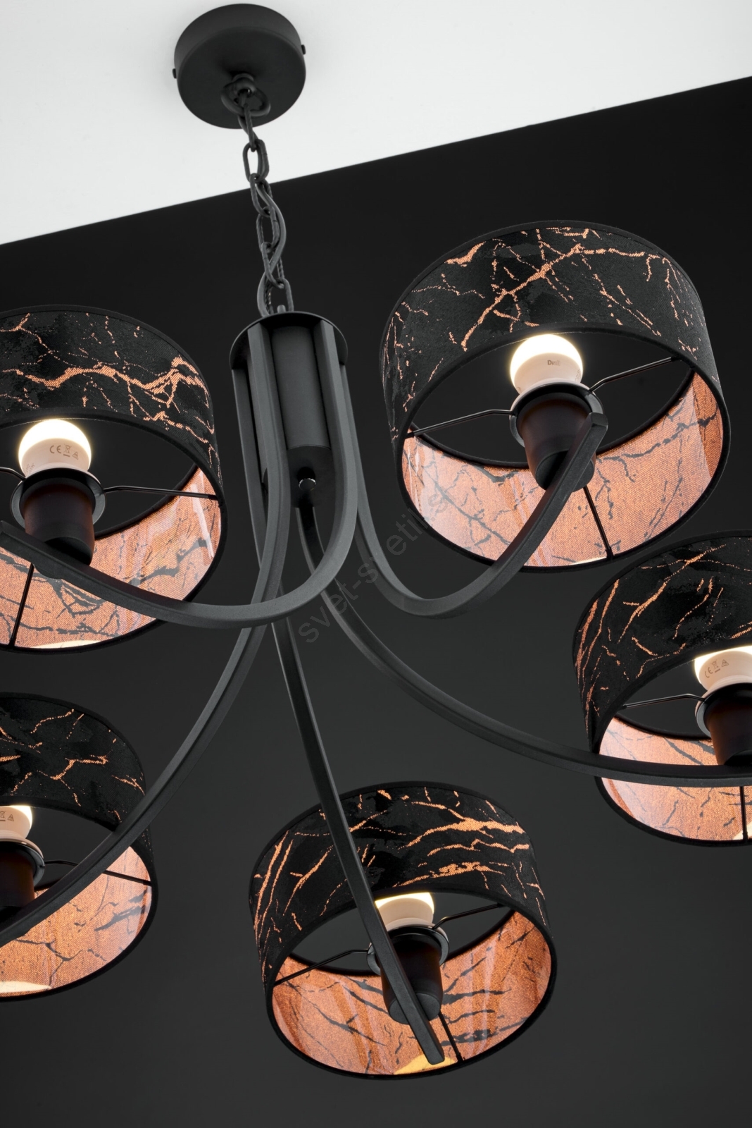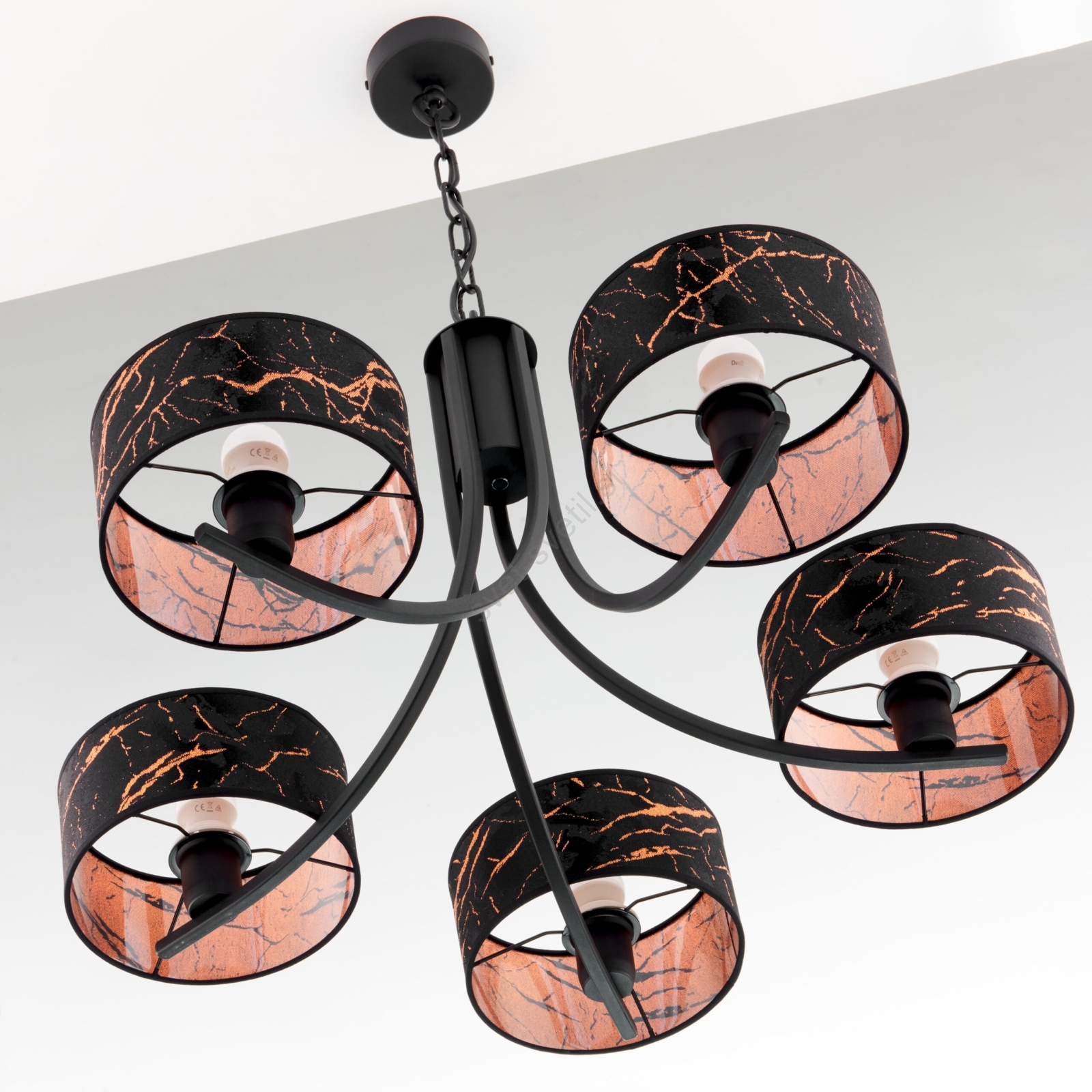 Jupiter 2107 - Lestenec na verigi ARTHUR 5xE27/15W/230V črna/oranžna/marmorni dekor je značilen lep in funkcionalen dizajn. Za svetilko je primerna žarnica z vznožkom E27. Tukaj lahko kupite ostale žarnice po ugodnih cenah.