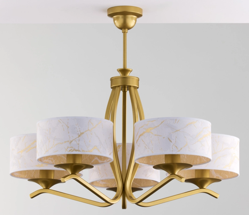 Jupiter 2110 - Stropni lestenec na drogu KASZMIR 5xE27/15W/230V bela/zlata/marmorni dekor je značilen lep in funkcionalen dizajn. Za svetilko je primerna žarnica z vznožkom E27. Tukaj lahko kupite ostale žarnice po ugodnih cenah.