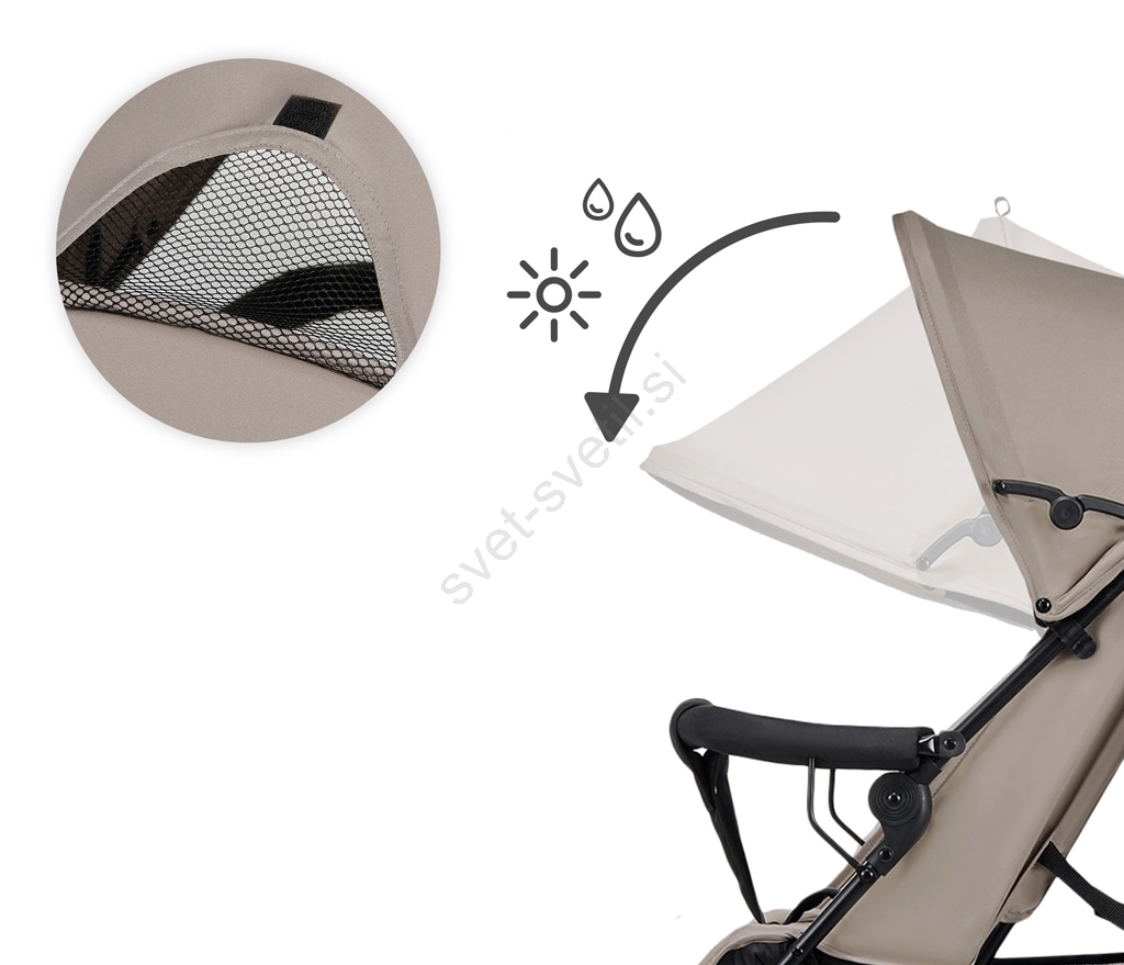 • Raztegljiv senčnik nudi senco in zaščito ter je opremljen z okencem za enostaven stik z otrokom.