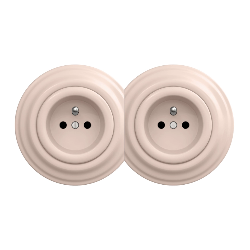 Kliklap - Dvojna retro domača vtičnica z okvirjem, 230 V, prašno rožnata