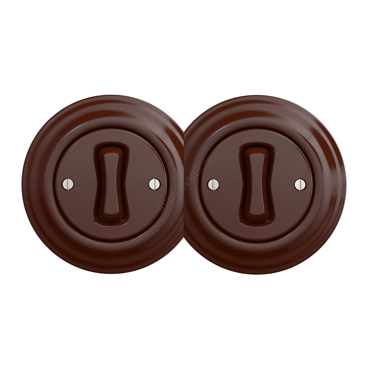 Kliklap - Dvojno retro enopolno stikalo z okvirčkom št. 1, rjave barve