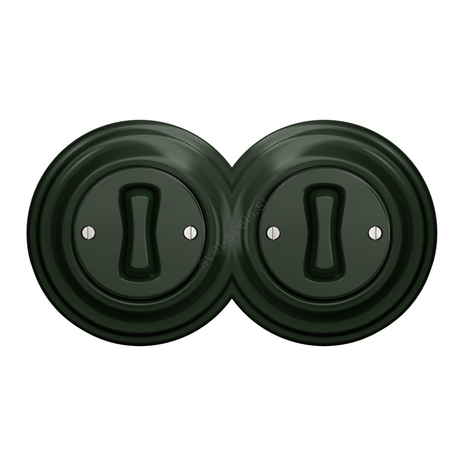 Kliklap - Dvojno retro enopolno stikalo z okvirčkom št. 1, zeleno