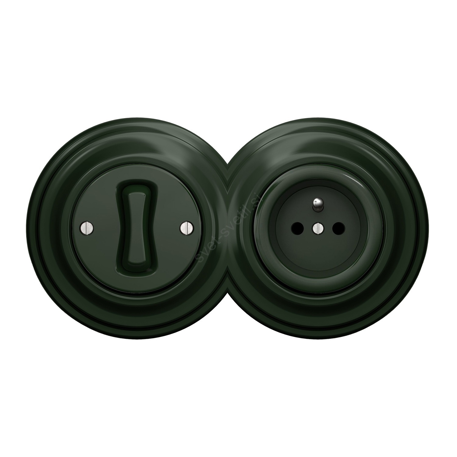 Kliklap - retro enopolno stikalo št. 1 in vtičnica 230 V z zelenim okvirjem