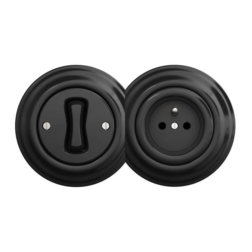 Kliklap - Retro enopolno stikalo št. 1 in vtičnica 230V z okvirjem, črna