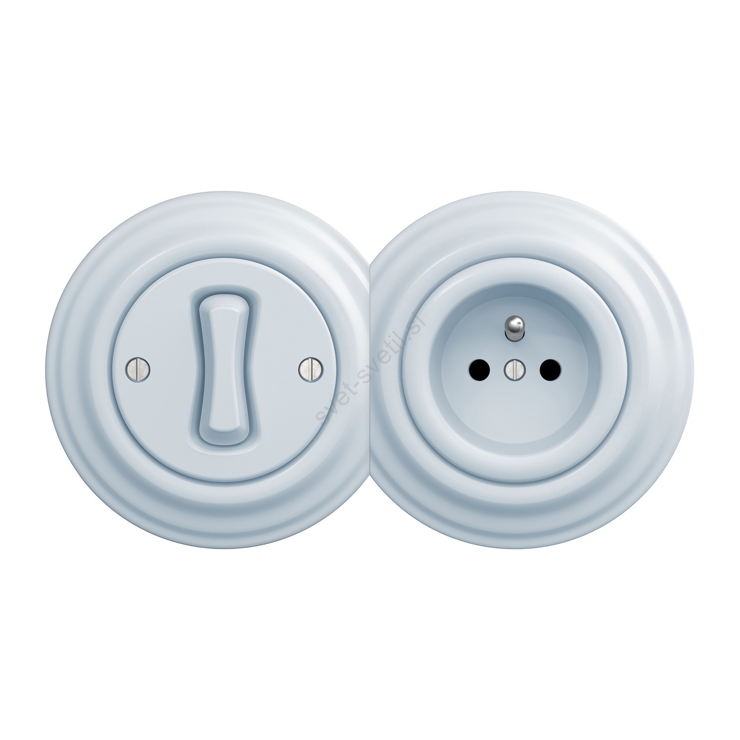 Kliklap - Retro enopolno stikalo št. 1 in vtičnica 230 V z okvirjem, modra