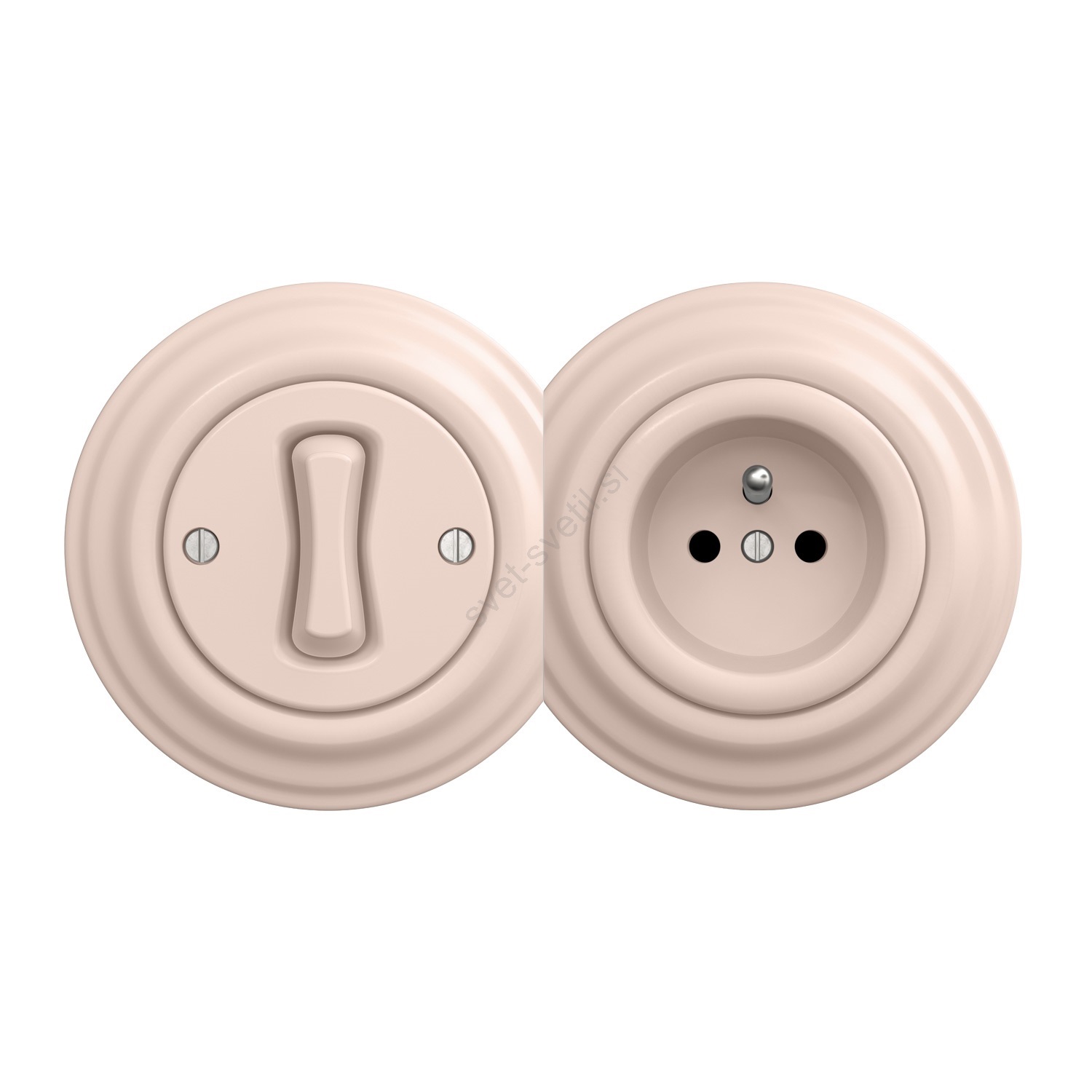 Kliklap - Retro enopolno stikalo št. 1 in vtičnica 230V z okvirjem v vintage rožnati barvi
