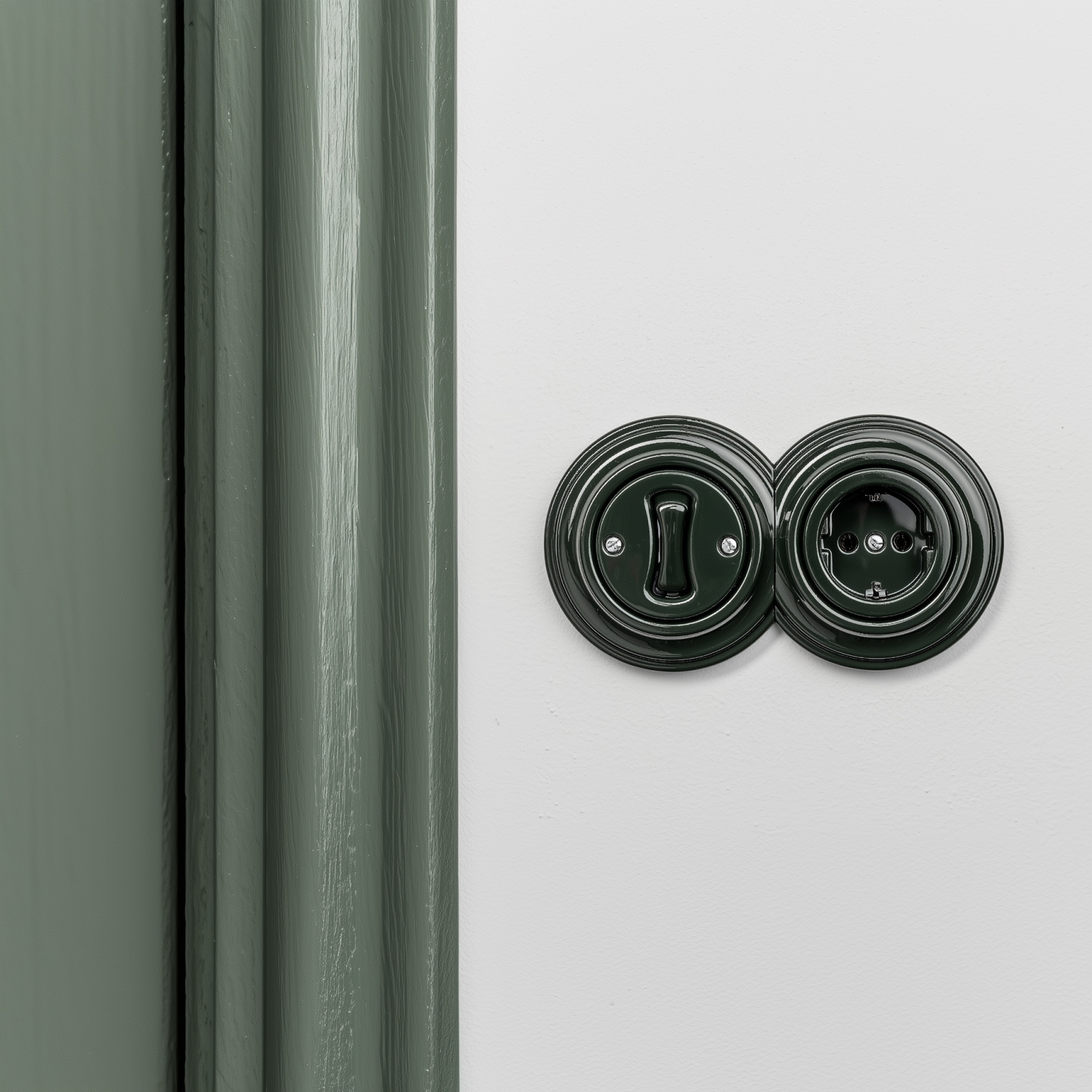 • Kliklap - Retro enopolno stikalo št. 1 in vtičnica SCHUKO 230 V z okvirjem, zelena