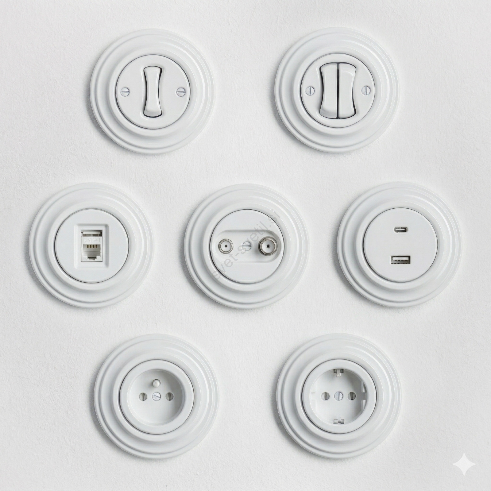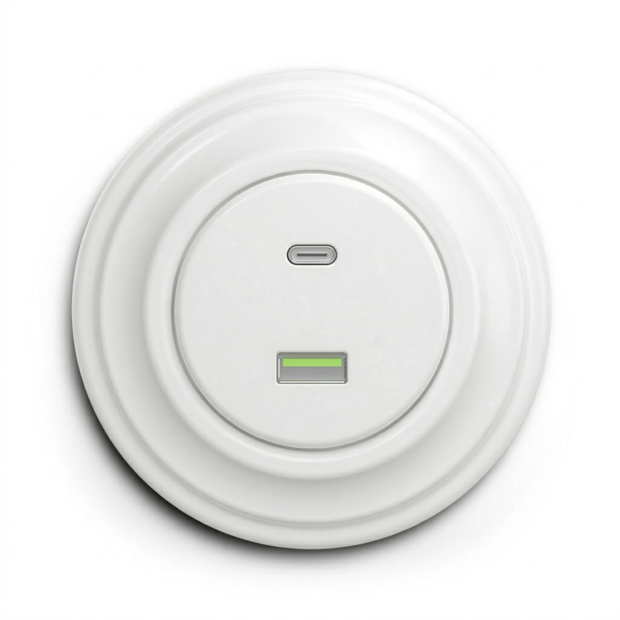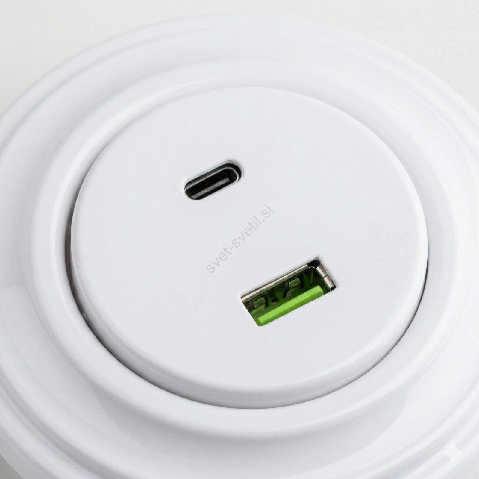 • Kliklap - Retro USB vtičnica A+C s keramičnim okvirjem, bela