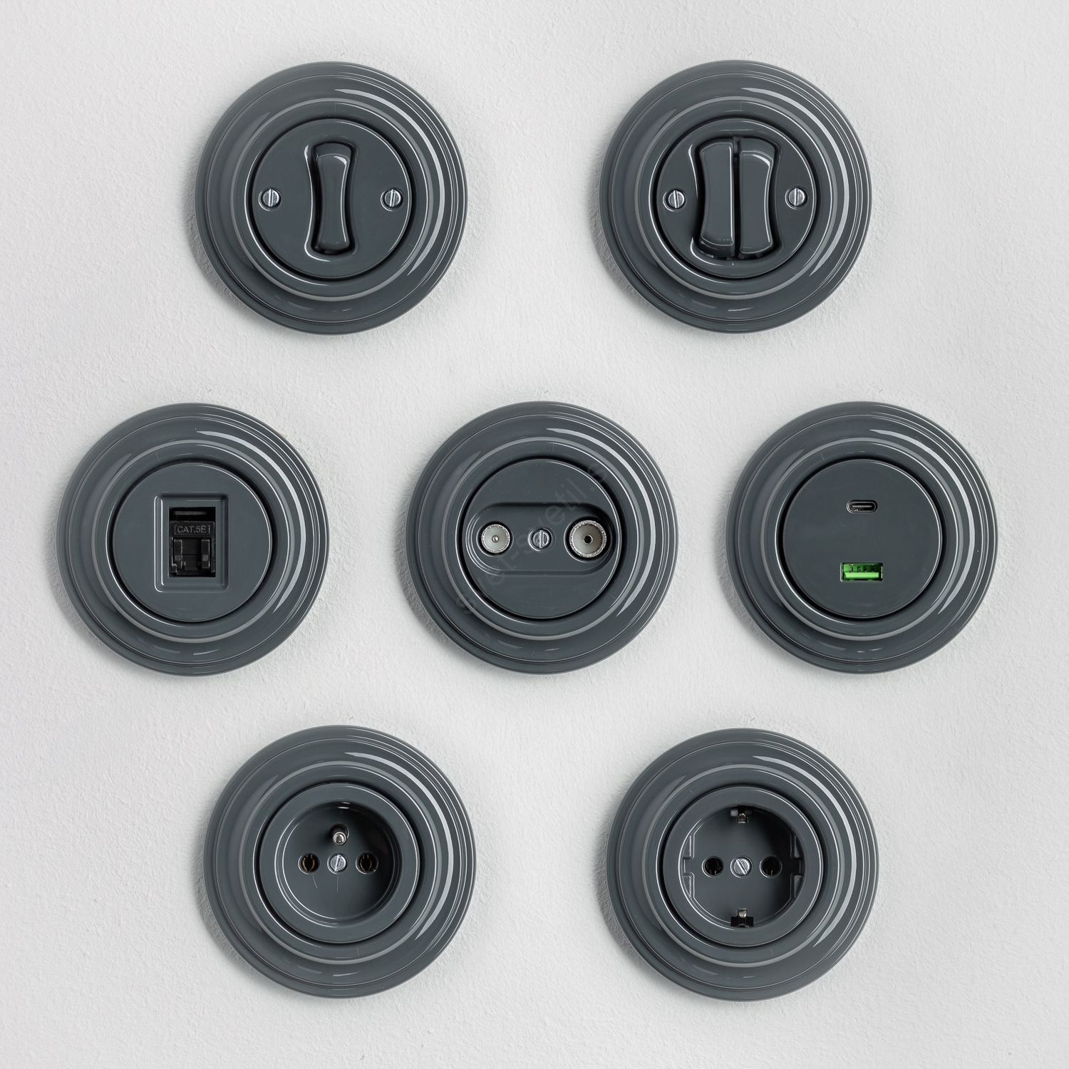 • Kliklap - Retro vtičnica za TV in radio (prehodna) z okvirjem, siva