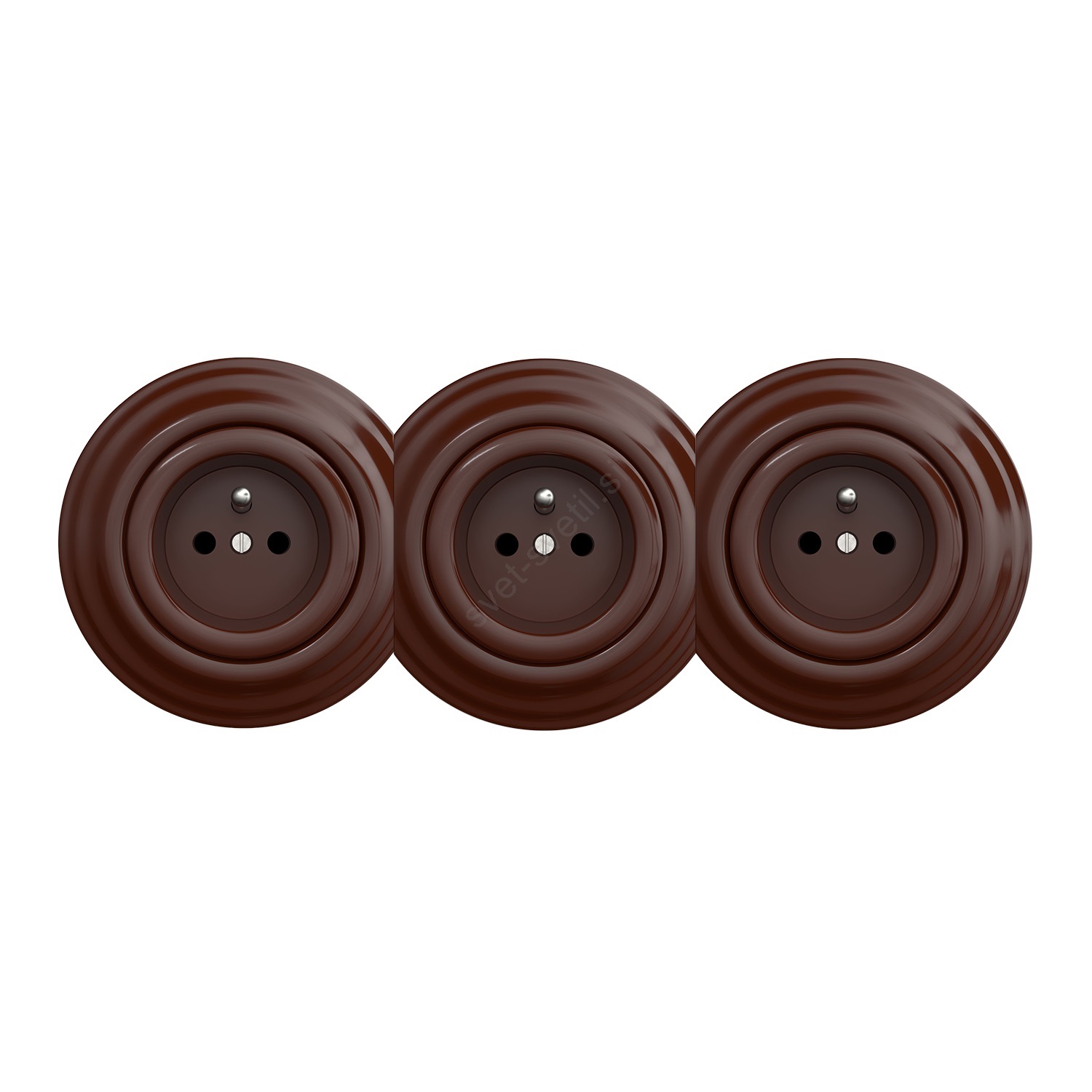 Kliklap - Trojna retro vtičnica z okvirjem, 230 V, rjava