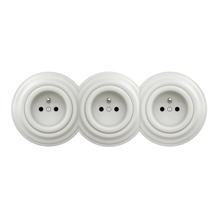 Kliklap - Trojna retro stenska vtičnica z okvirjem 230 V bela