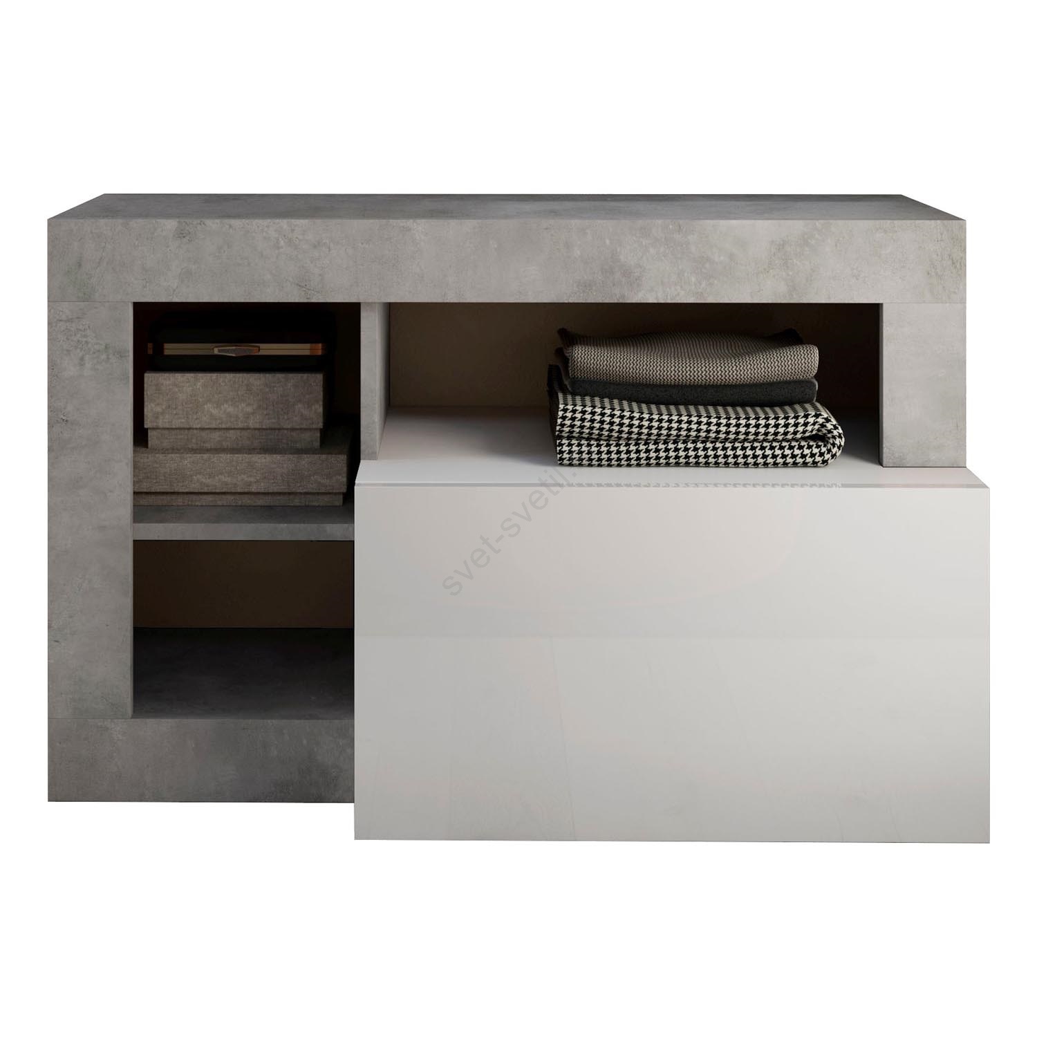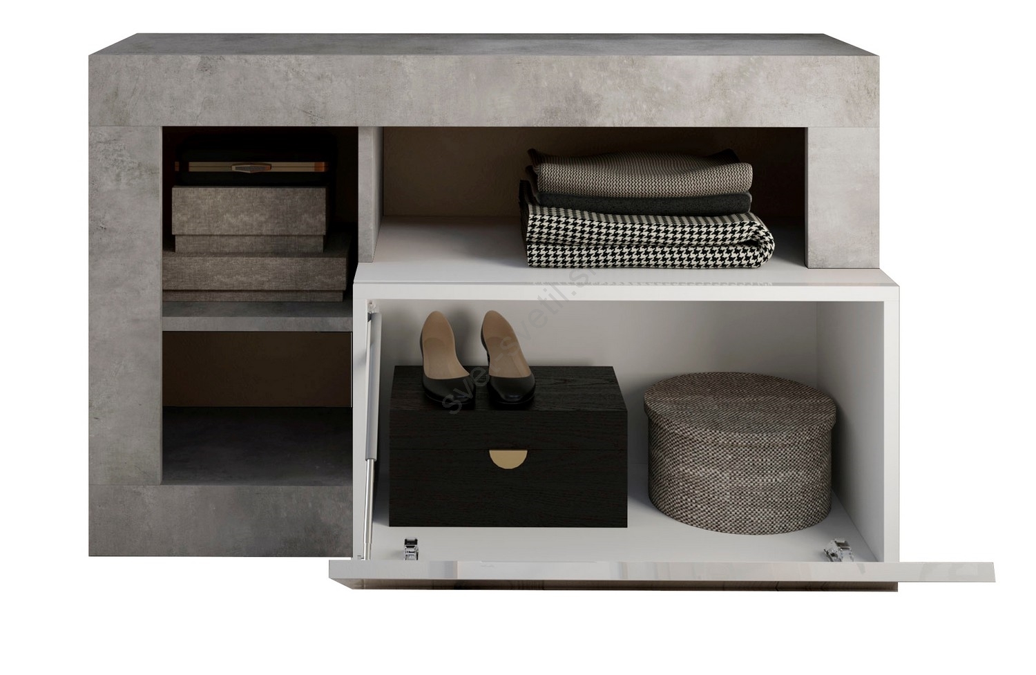 • Ima 3 odprte police in notranjo polico z dvižnim odpiranjem za shranjevanje torb, čevljev in sezonskih predmetov.