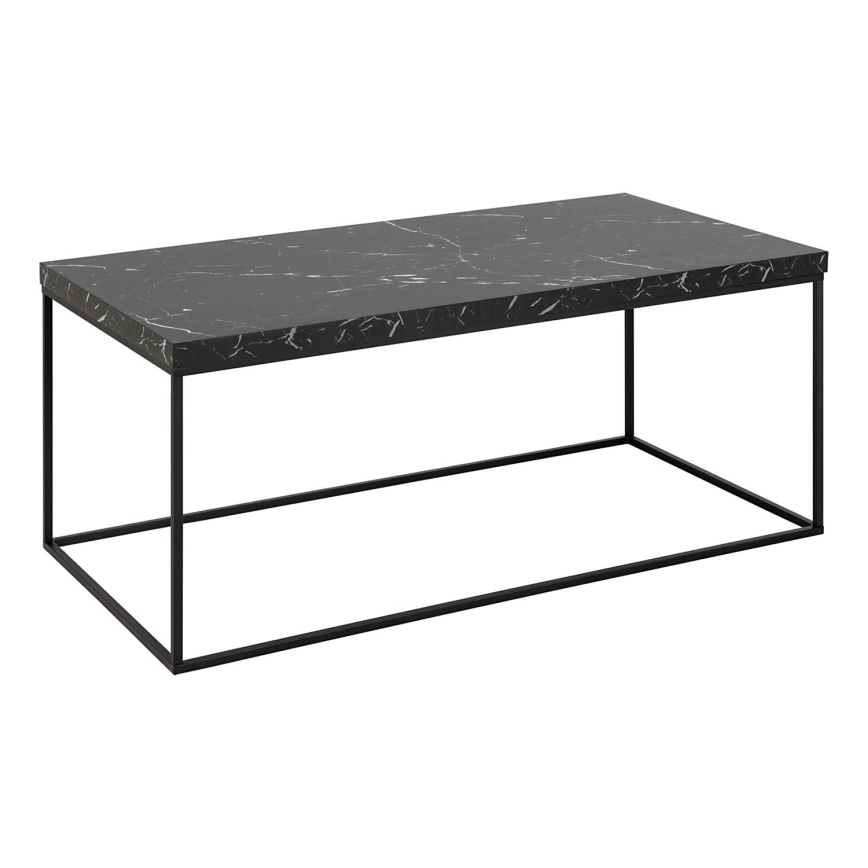 • Plošča: črni marmor Marquina, melamin z grobo strukturo; podnožje: prašno lakirano jeklo v mat črni barvi z grobo površino.