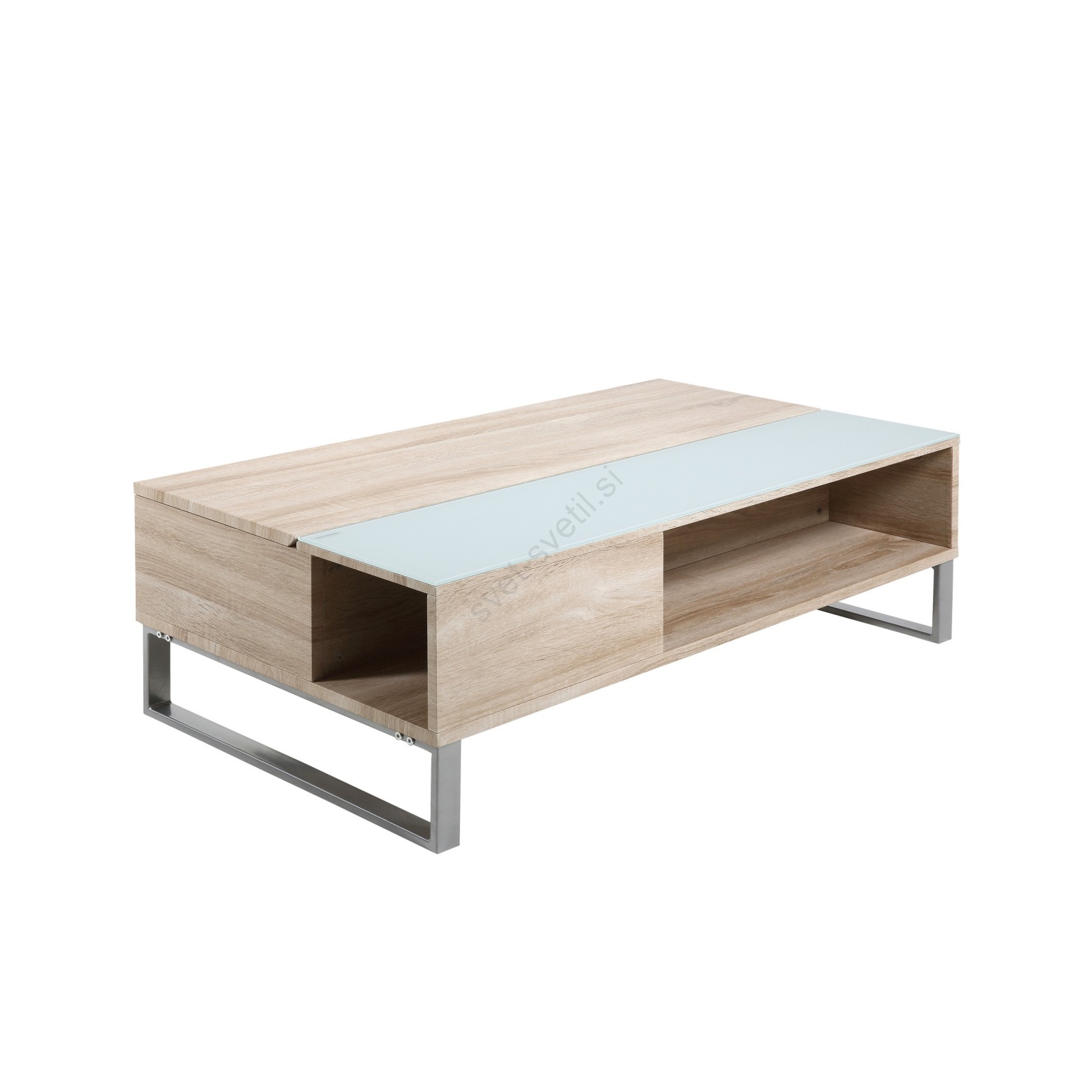 • Plošča mize je izdelana iz belega kaljenega stekla in iverne plošče v dekorju hrasta Sonoma.