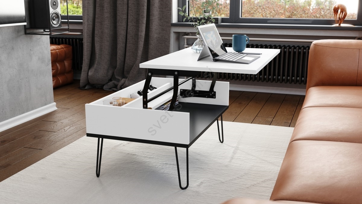 • Konferenčna mizica z dvigljivo ploščo in polico HALIJA bela/črna