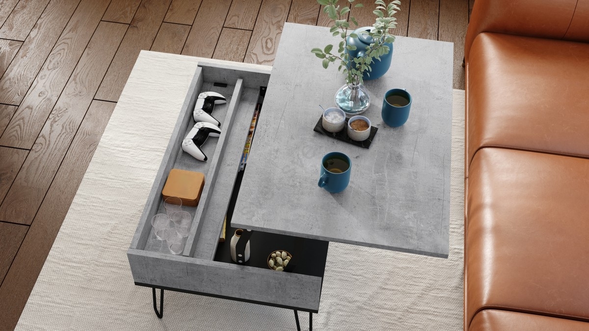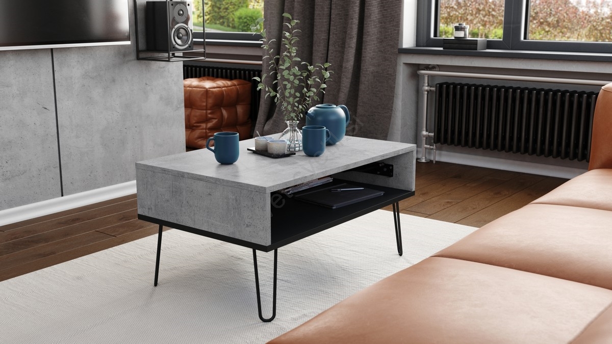 • Klubska mizica s dvignljivo ploščo in polico HALIJA, betonsko siva/črna
