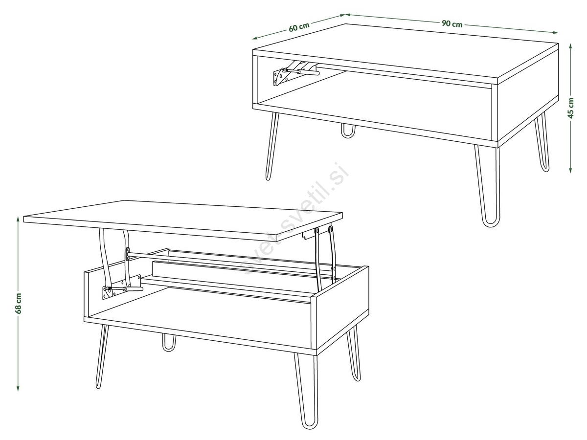 • Klubska mizica z dvigljivo ploščo HALIJA