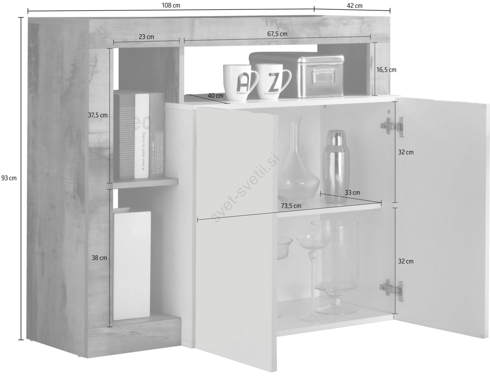 • Ponuja prostoren shranjevalni prostor za urejeno razporeditev vsakodnevnih predmetov.