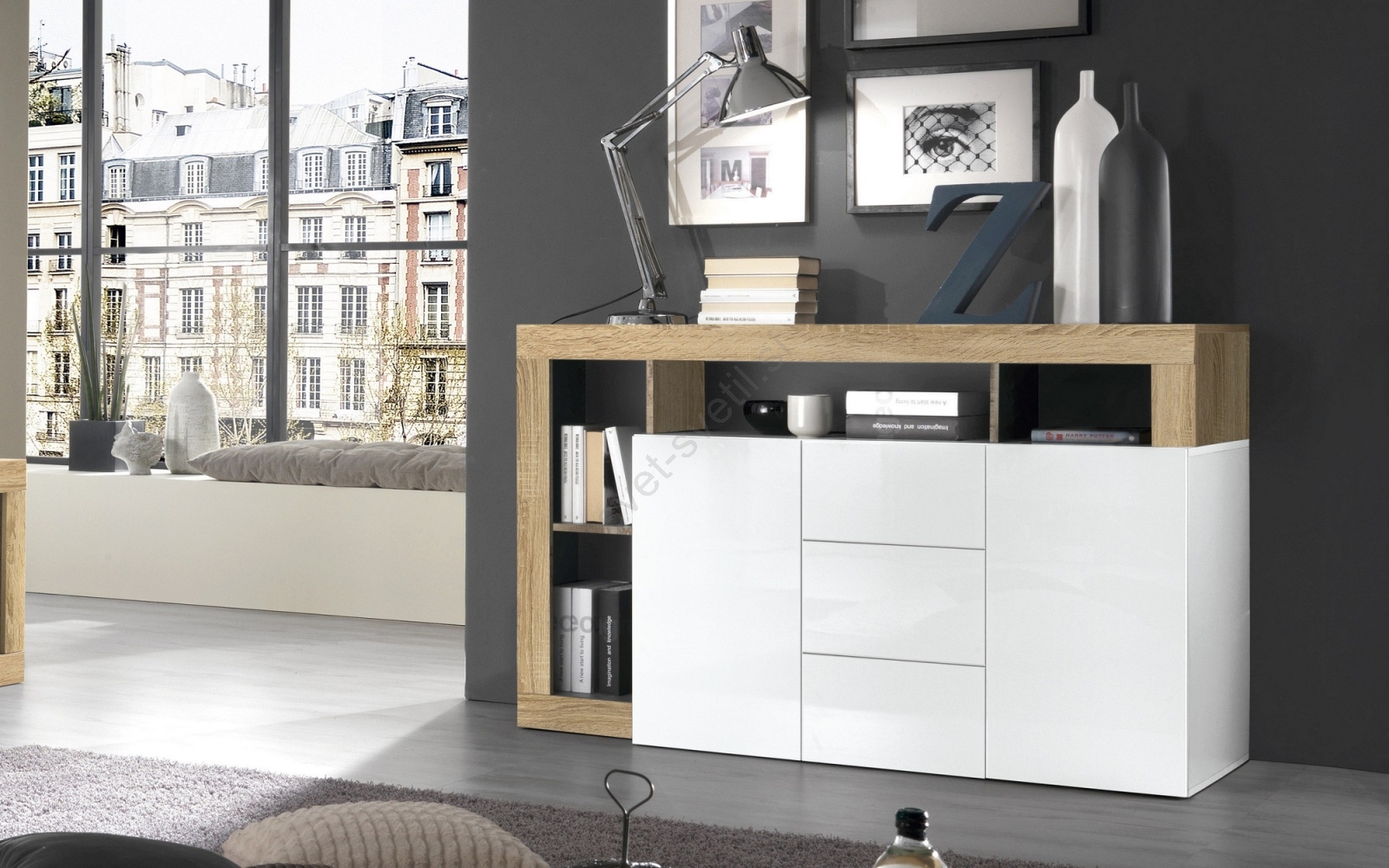 • Komoda LENOR bela/antracit
