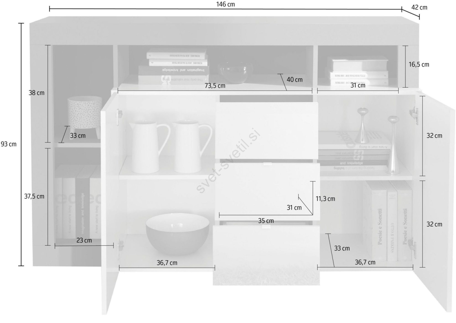 • Omarice in predali zagotavljajo velikodušen prostor za urejeno shranjevanje vsakodnevnih predmetov.